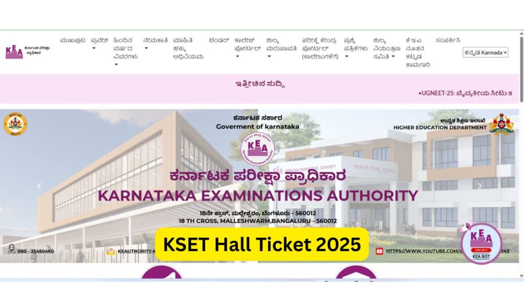 KSET Hall Ticket 2025: कर्नाटका राज्य पात्रता परीक्षा (KSET) 2025 के लिए एडमिट कार्ड 24 अक्टूबर 2025 को कर्नाटका परीक्षा प्राधिकरण (KEA) द्वारा आधिकारिक वेबसाइट cetonline.karnataka.gov.in पर जारी कर दिए गए हैं। यह परीक्षा कर्नाटका राज्य में सहायक प्रोफेसर के पद के लिए उम्मीदवारों की पात्रता निर्धारित करने के लिए आयोजित की जाती है। KSET 2025 की परीक्षा 2 नवंबर 2025 को सुबह 10:00 बजे से दोपहर 1:00 बजे तक आयोजित होगी। परीक्षा दो पेपरों में होगी: पेपर I में 50 बहुविकल्पीय प्रश्न होंगे, जबकि पेपर II में 100 बहुविकल्पीय प्रश्न होंगे। दोनों पेपरों की कुल अवधि 3 घंटे होगी।